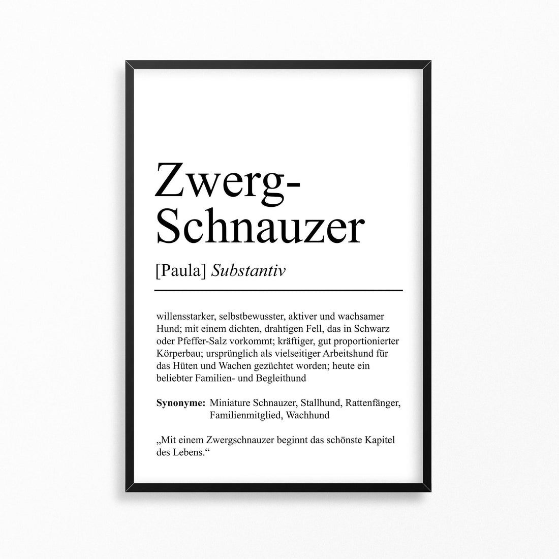 Zwergschnauzer Definition Poster personalisierbar mit Name Hunde Rasse Poster Geschenk Hundebesitzer Einzug Geburtstag Geschenk