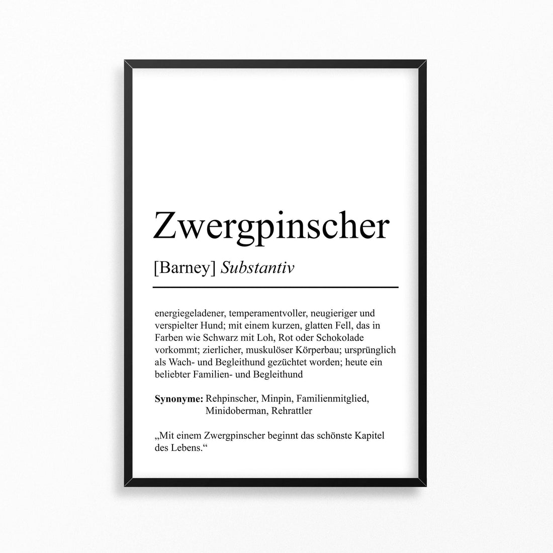 Zwergpinscher Definition Poster personalisierbar mit Name Hunde Rasse Poster Geschenk Hundebesitzer Einzug Geburtstag Geschenk