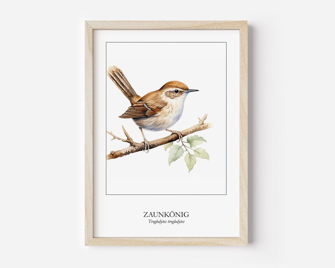 Zaunkönig Poster Watercolor Digitale Wandkunst Poster für Ornithologen Geschenk Umzug Aquarell Poster Zaunkönig auf Ast Vogelposter