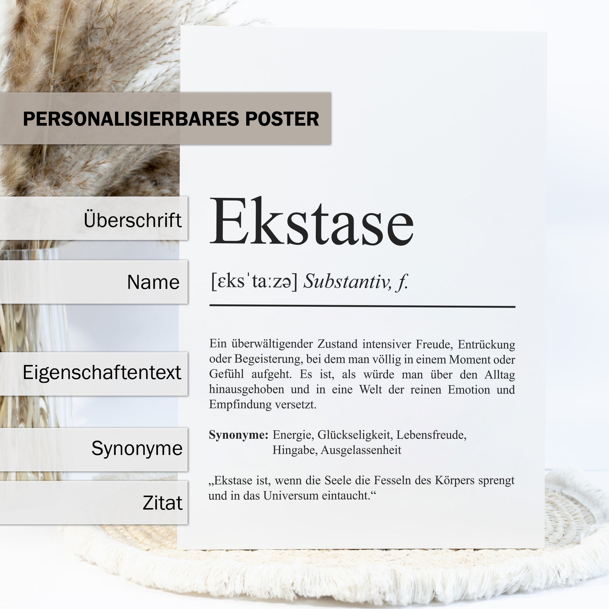 Ekstase Definition Poster - Minimalistisch - ungerahmt