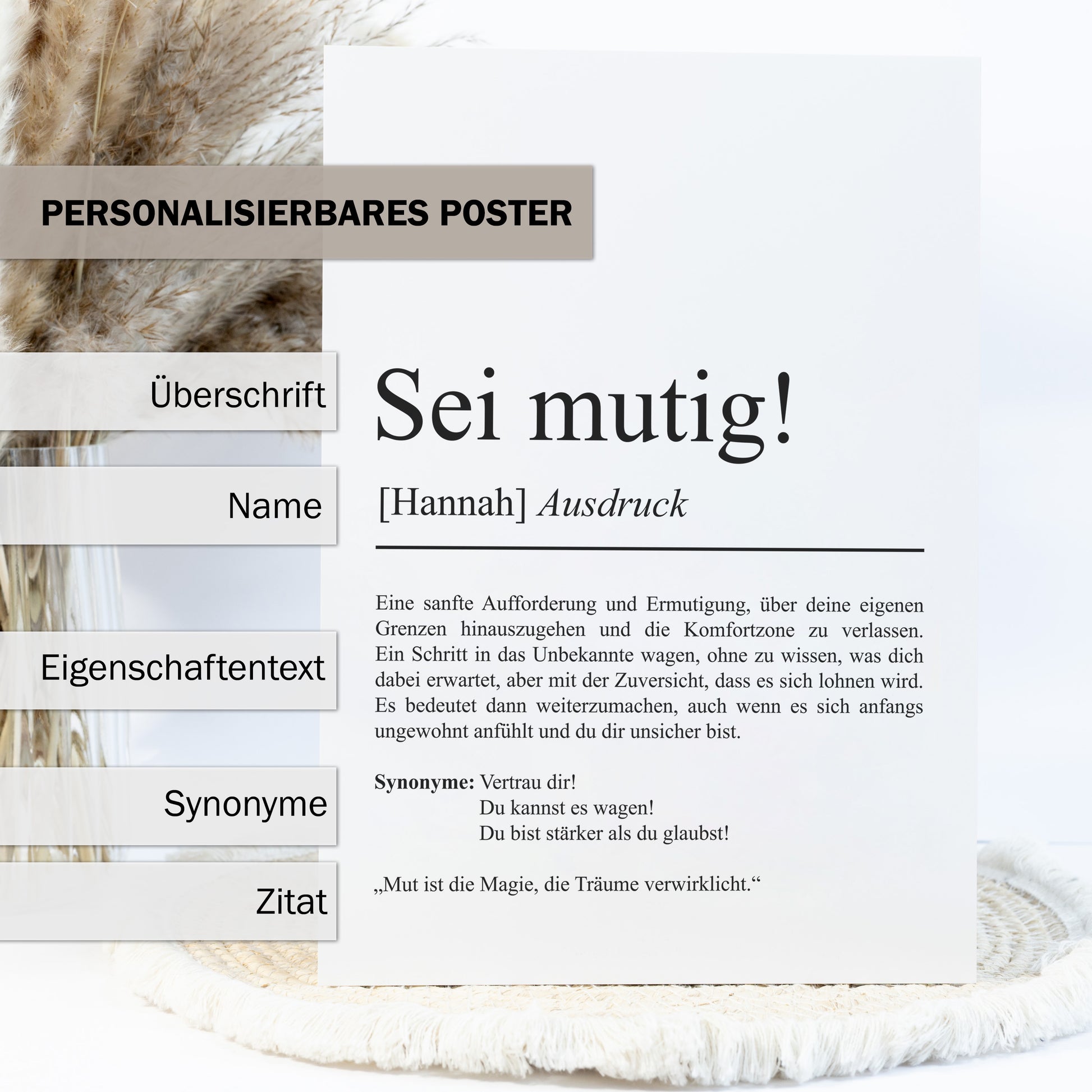 HINWEIS: Alle Personalisierungsangaben sind optional. Wenn Du keine Personalisierung weiter angibst, wird das dargestellte Poster mit der Lautschrift angefertigt (Bild 3).