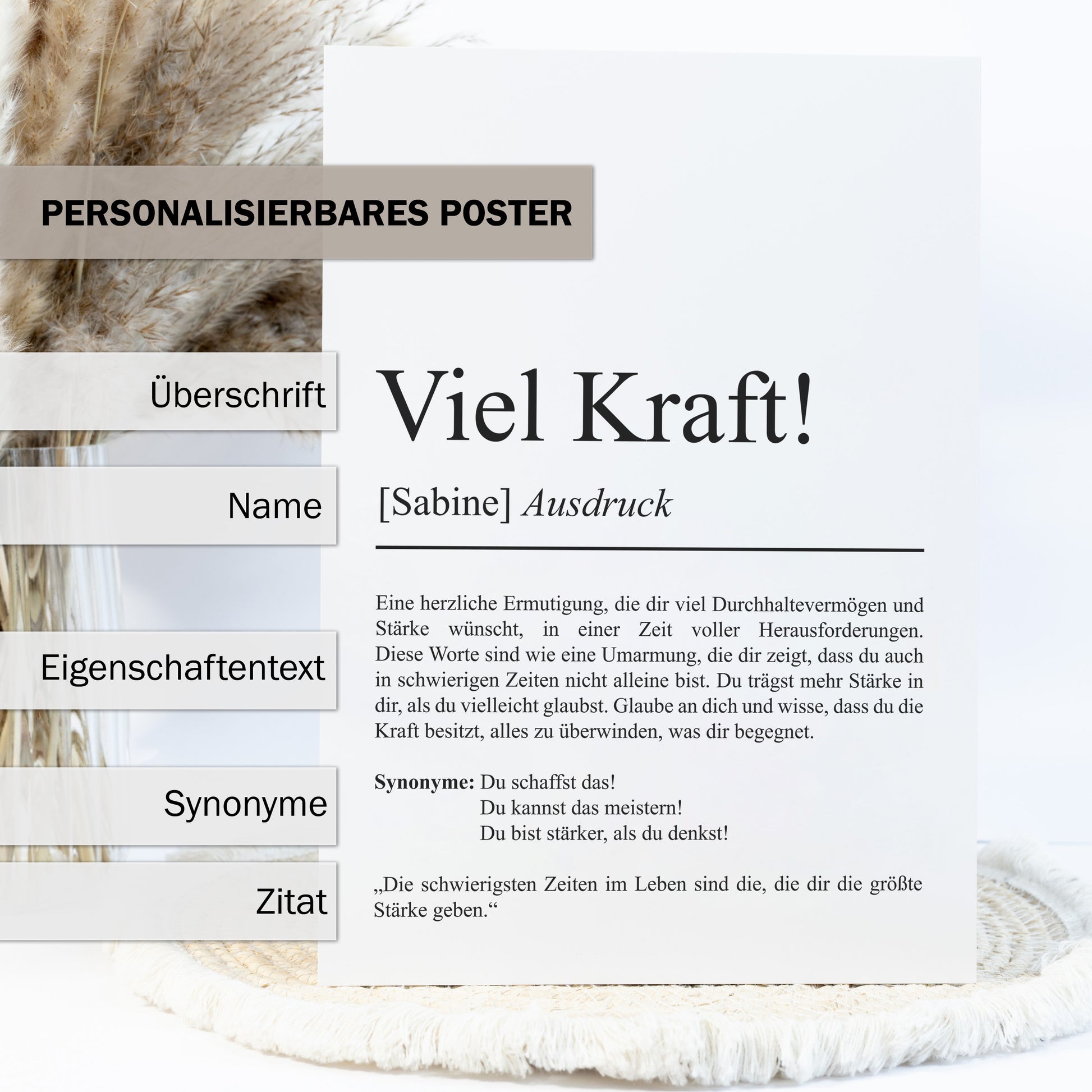 Viel Kraft Definition Poster - Minimalistisch - ungerahmt
